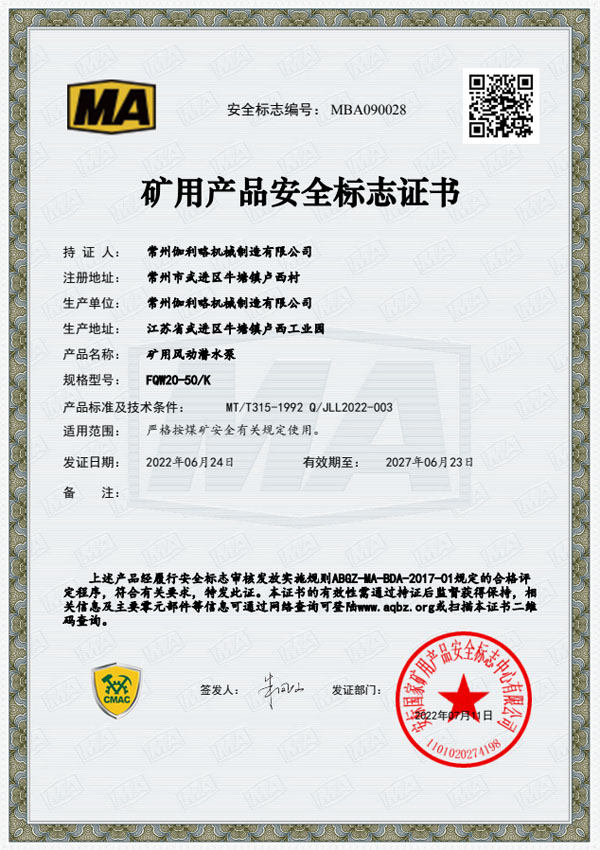 • 礦用安全標(biāo)志證書-BQG170/0.3
